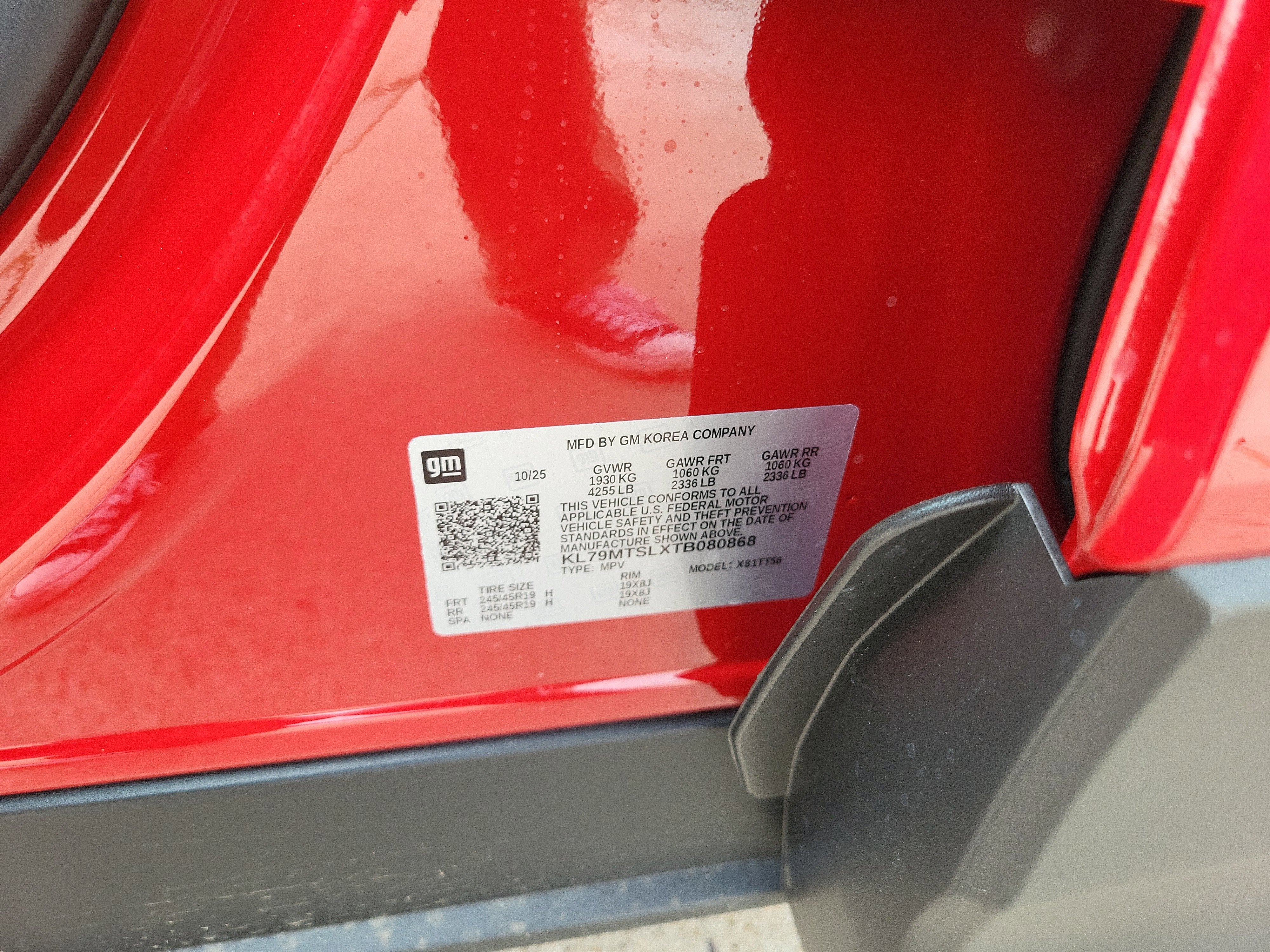 - Tires, 245/45R19 all-season, blackwall